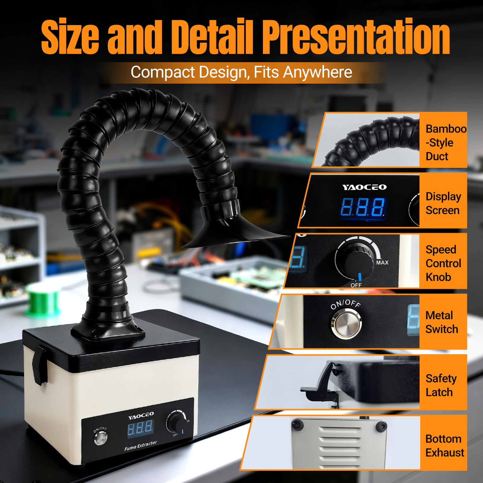 YC60 Solder Fume Extractor, High Power Solder Smoke Absorber with Digital Display & Speed Control, 3-Stage Filtration (HEPA+Carbon), Fume Extractor for Desktop Soldering,Welding-Includes 5 Pre-Filters